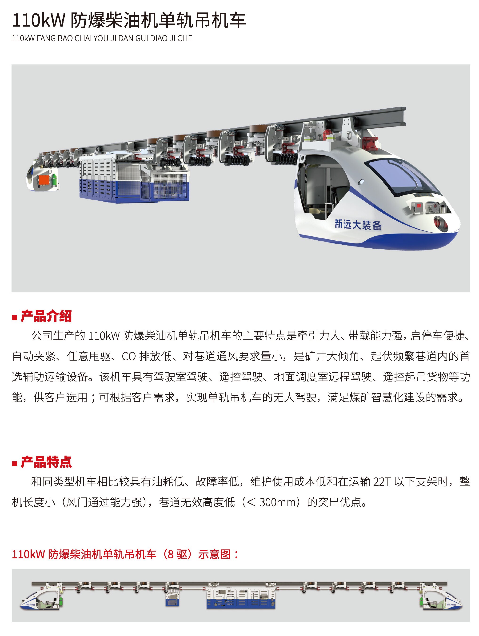 防爆柴油機(jī)單軌吊機(jī)車